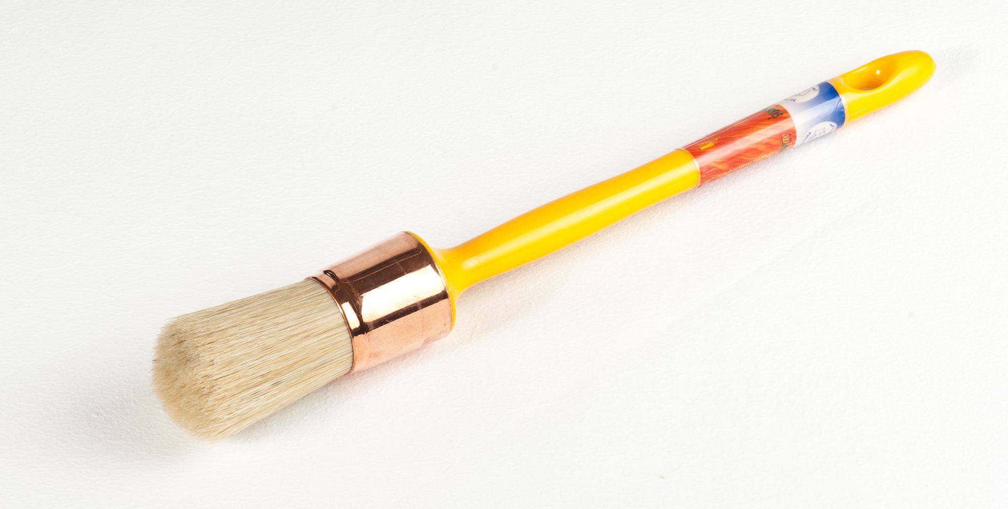brocha prensada mezcla de sedas naturales / sintéticas, mango en polietileno amarillo, virola de acero de cobre apto para cualquier tipo de pintura