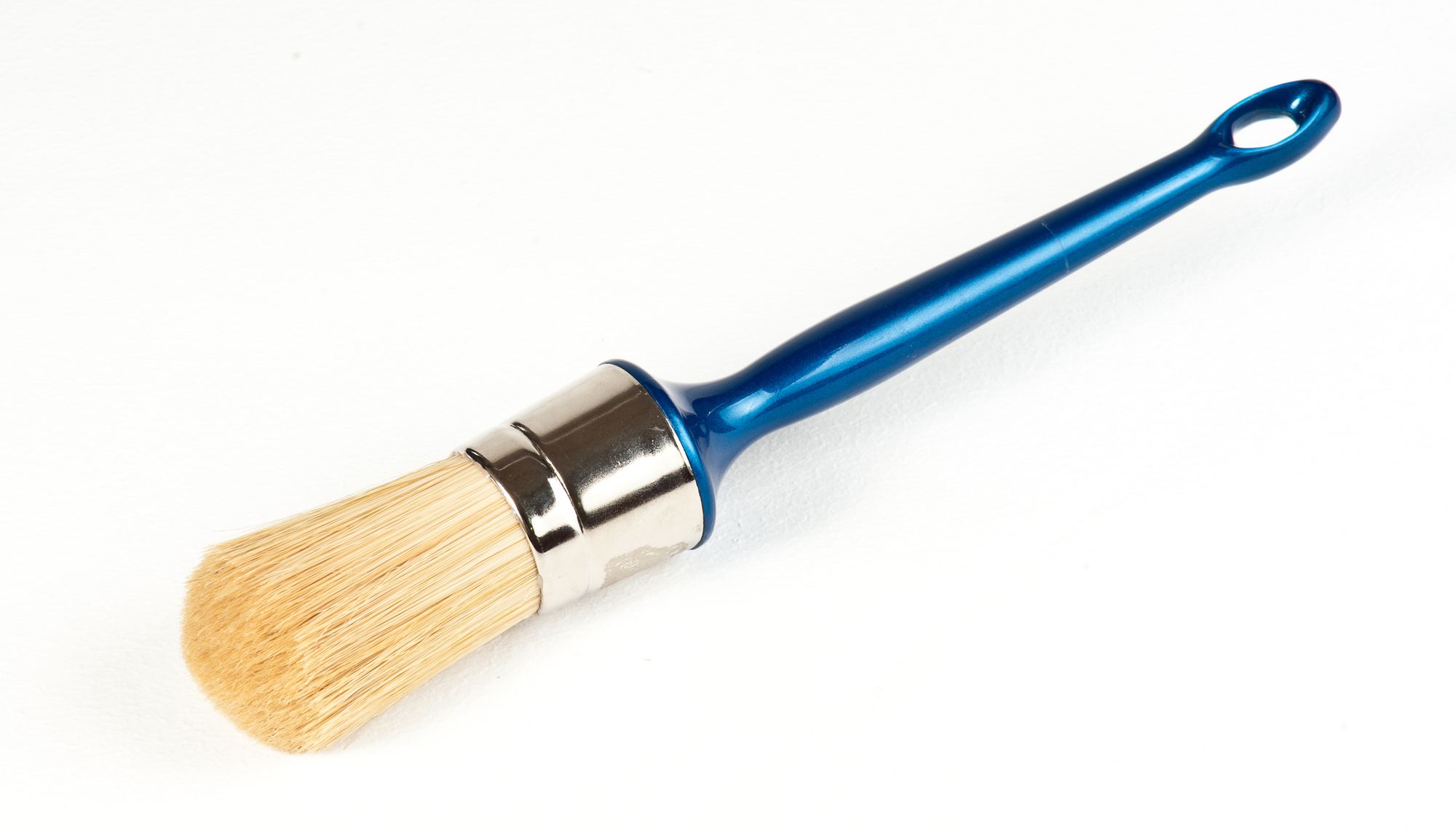 Brosse pousse mélange soie naturelles / synthetiques, manche polypropylène laqué bleu, virole en acier nickelé, Convient pour tout type de peinture,