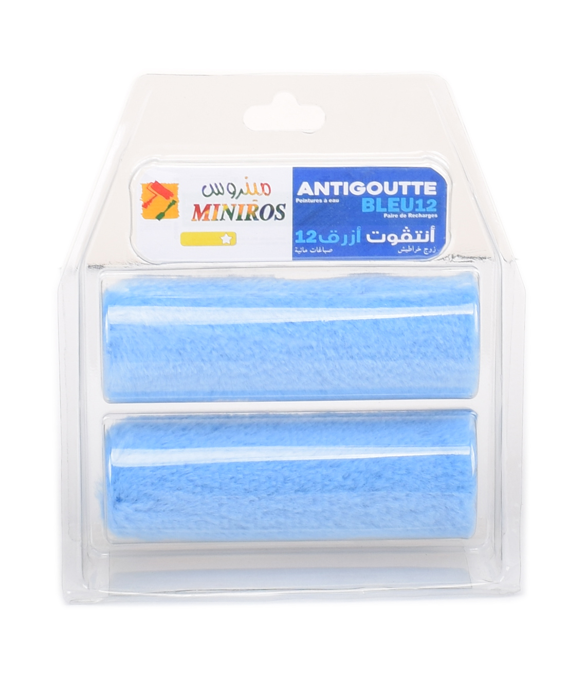 PAIRE DE RECHARGE ROULEAU PASSE PARTOUT ANTIGOUTTE BLEU 12*